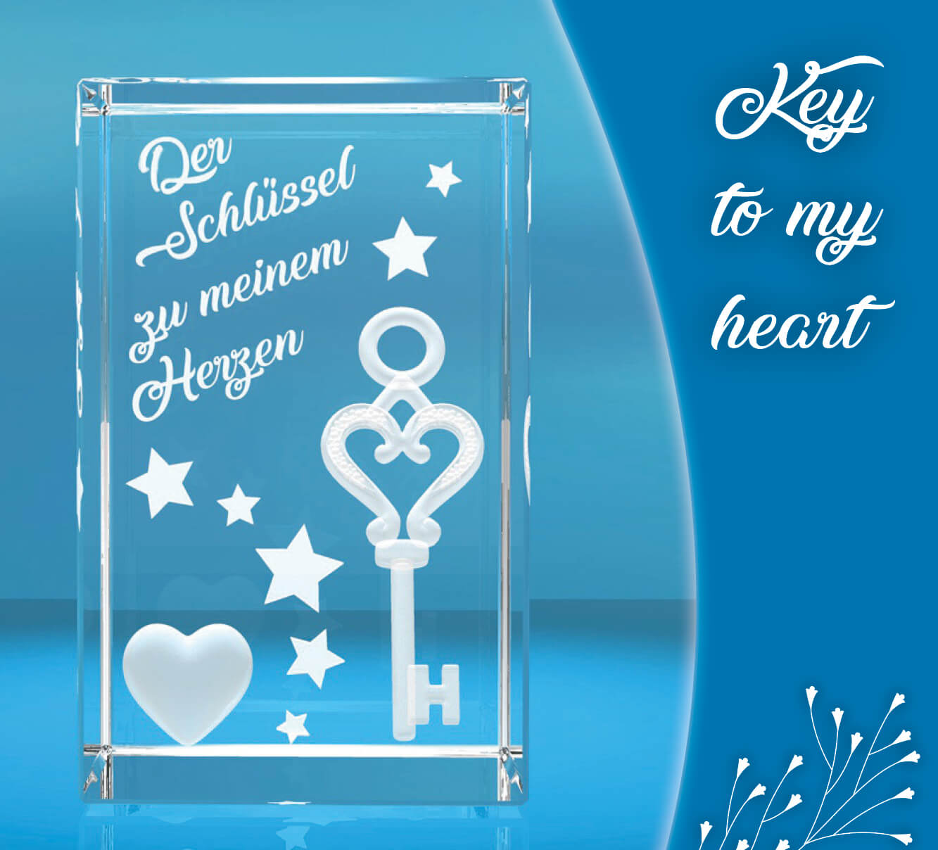 Besiegele Deine Wahre Liebe dauerhaft mit einem schönen Glaskristall. Ein tolles Geschenk für die Ewigkeit. Sie erhalten einen 3D Glaskristall 80x50x50mm mit dem abgebildeten Motiv graviert. Wir gravieren das abgebildete Motiv mitten in einen Glaskristall hinein - die Gravur schwebt im inneren des Glaskristalles und ist für die Ewigkeit geschützt.Die HD-GRAVUR wird mittels unseren Hochleistungslasern in unser hochwertiges Lumedix Glas eingraviert. Sie erhalten dadurch eine hochwertige Gravur bei dem kleinste Details zu sehen sind. Sie erhalten: 3D Glaskristall mit dem abgebildeten Motiv in den Abmessungen 80x50x50mm (Höhe x Breite x Tiefe) Hochwertige HD-GRAVUR mitten in den Glaskristall mit hunderttausenden von kleinen Bildpunkten die das Gesamtkunstwerk ergeben.Hochwertige Geschenkbox in Schwarz, ausgekleidet mit einem schönen Stoff und Magnetverschluss. Diese Geschenkbox eignet sich hervorragend zum weiterverschenken.