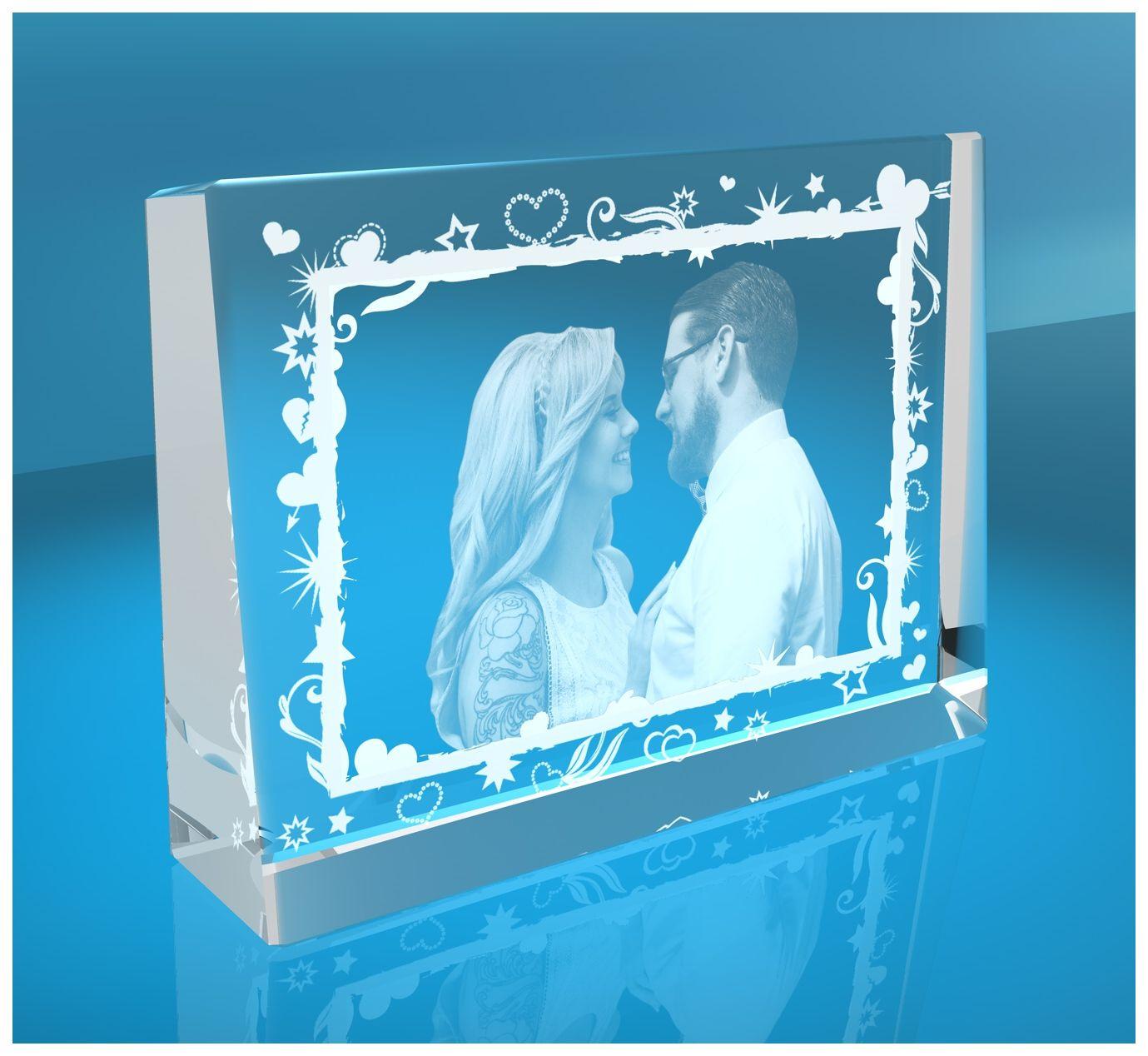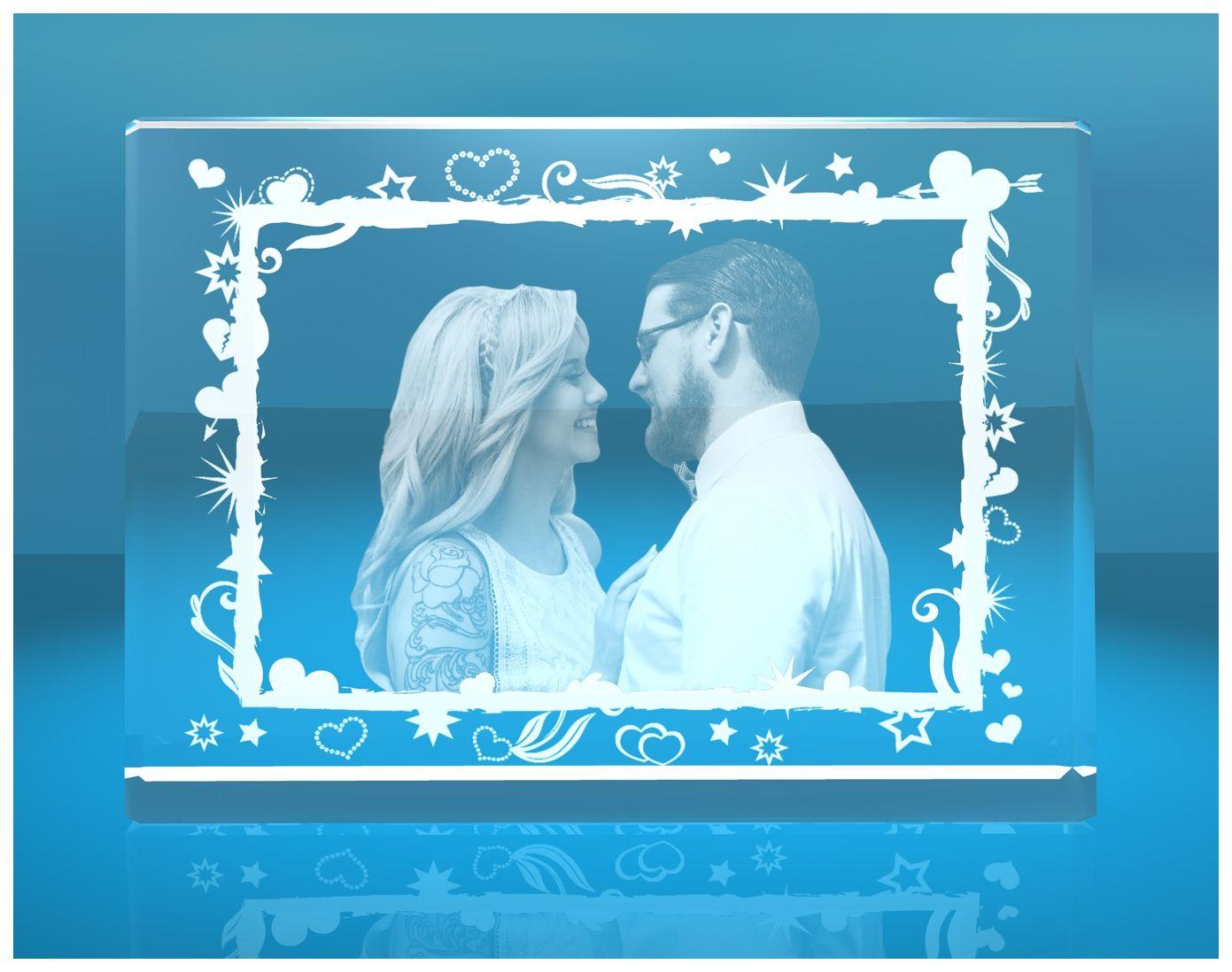 Produktinformationen "2D Glasfoto Fotoframe XL Motiv Rahmen aus Sternen und Herzen mit Deinem Wunschfoto - Leuchtsockel: OHNE Leuchtsockel"