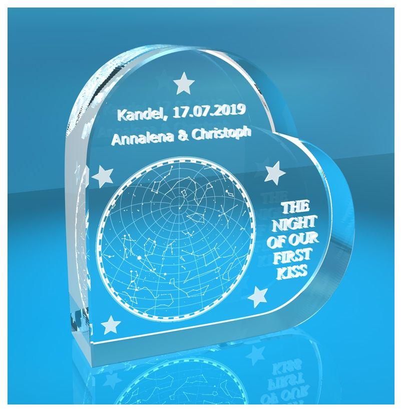 Produktinformationen "2D Glasherz Sternenhimmel vom Tag Eures ersten Kusses! - LED-Leuchtsockel: ohne LED-Leuchtsockel"