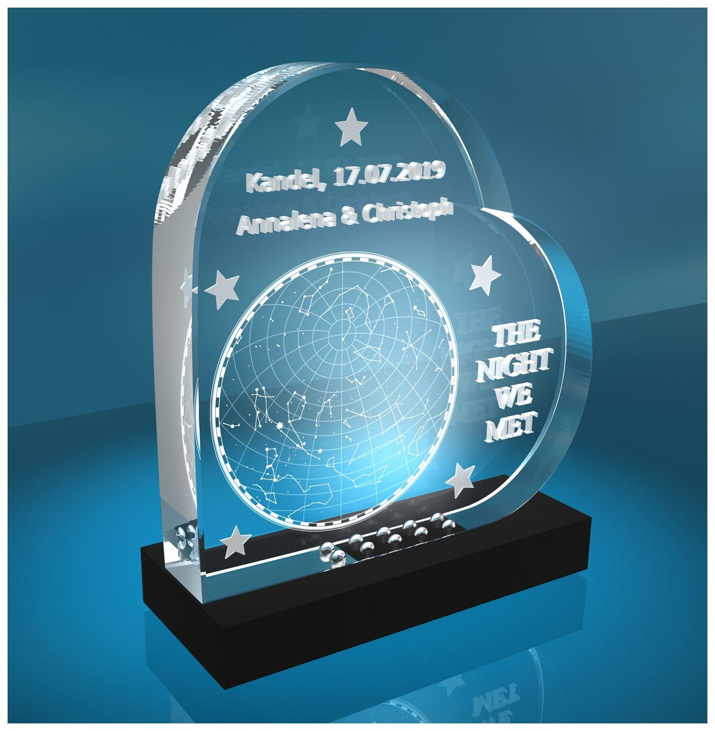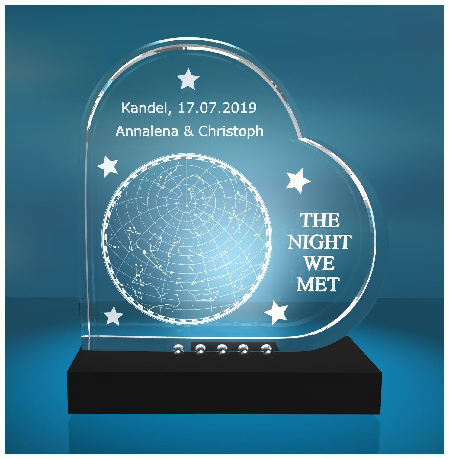 Produktinformationen "2D Glasherz Sternenhimmel von Eurem Tag des kennenlernens! - LED-Leuchtsockel: MIT LED-Leuchtsockel (Empfohlen)"