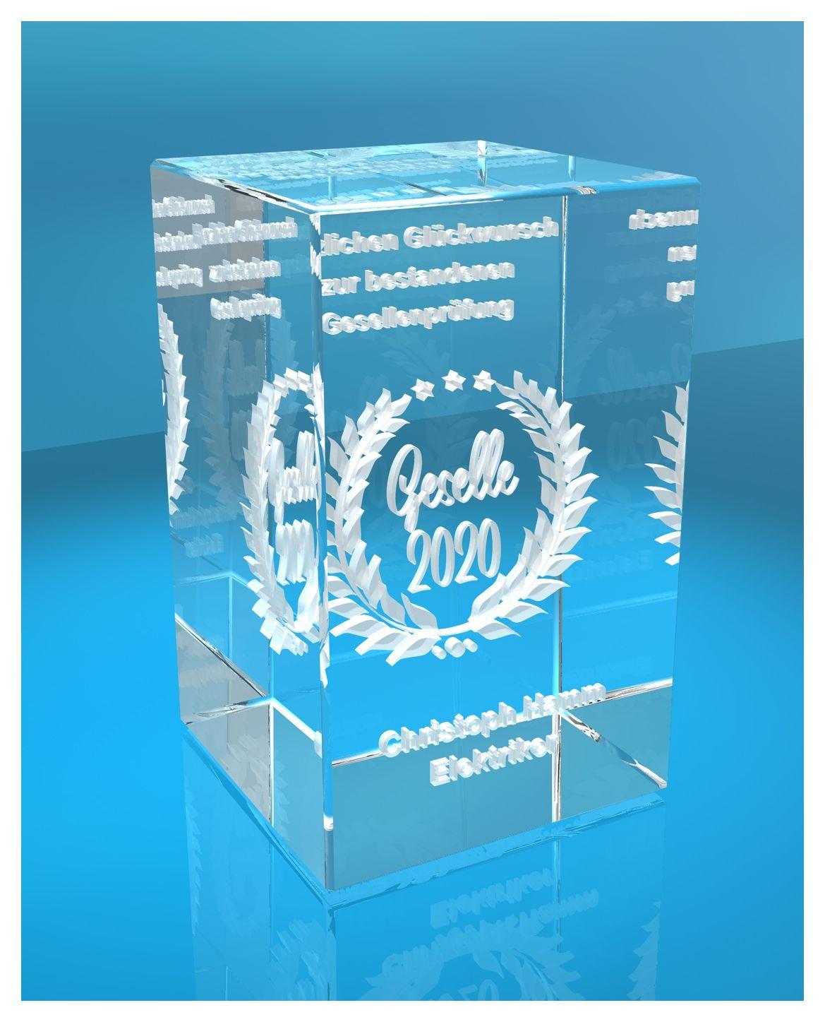 Produktinformationen "3D Glasquader Geselle 2020 Glückwunsch mit Wunschtext Geschenk zur Gesellenprüfung"