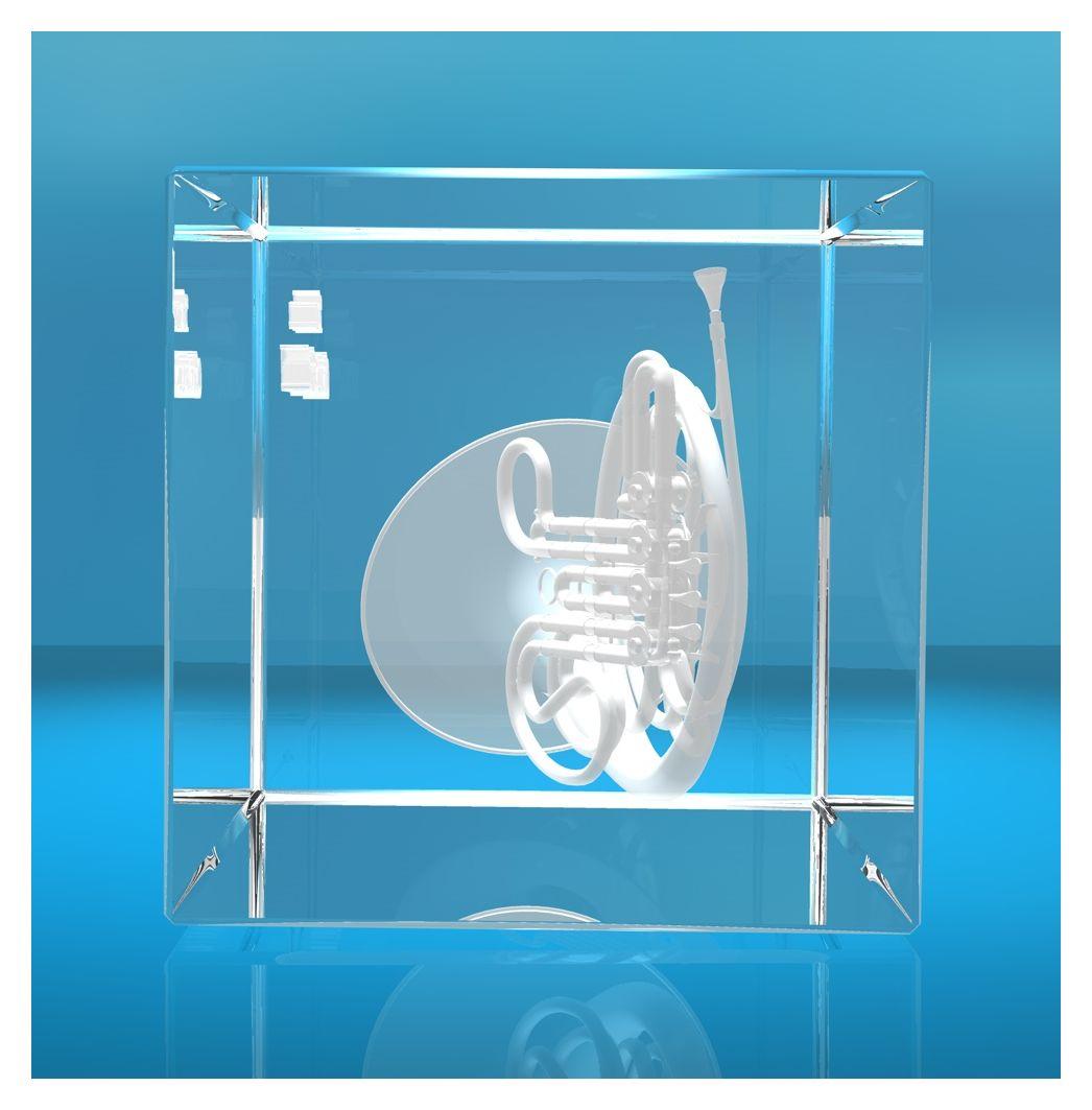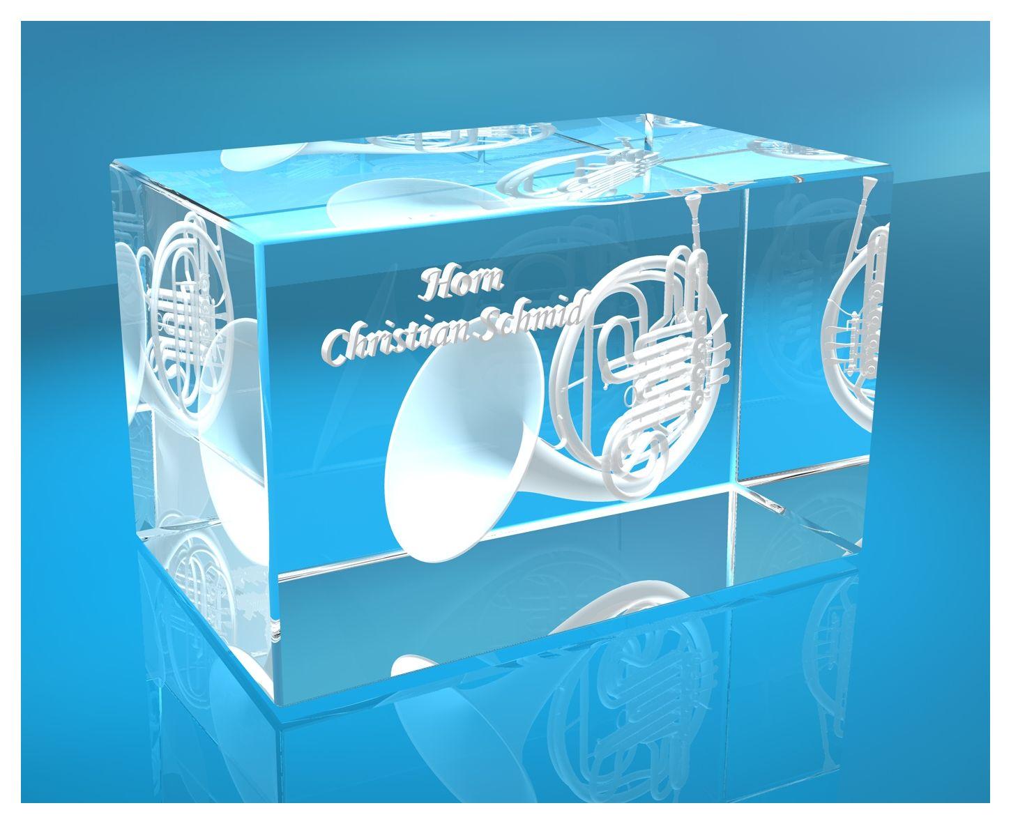 Produktinformationen "3D Glasquader |Horn mit Wunschnamen | Geschenk für Hornspieler Musiker"