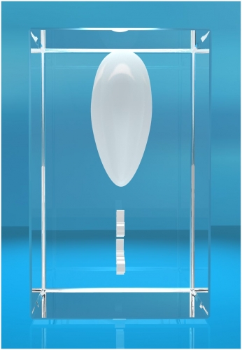 - 3D Glaskristall mit dem abgebildeten Motiv in den Abmessungen 80x50x50mm (Höhe x Breite x Tiefe)