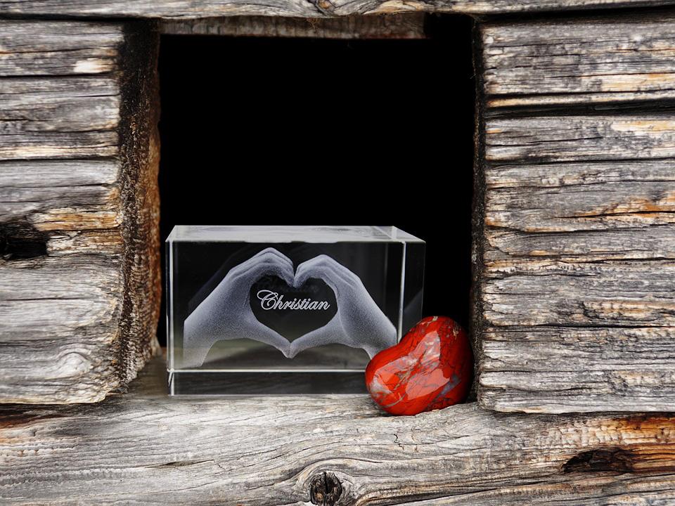 Besiegele Deine Wahre Liebe dauerhaft mit einem schönen Glaskristall. Ein tolles Geschenk für die Ewigkeit.