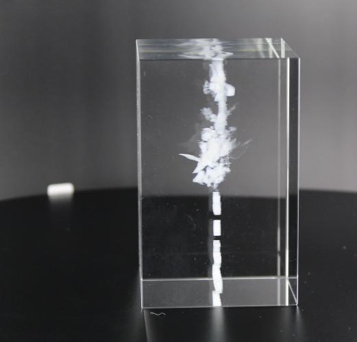- 3D Glaskristall mit dem abgebildeten Motiv in den Abmessungen 80x50x50mm (Höhe x Breite x Tiefe)