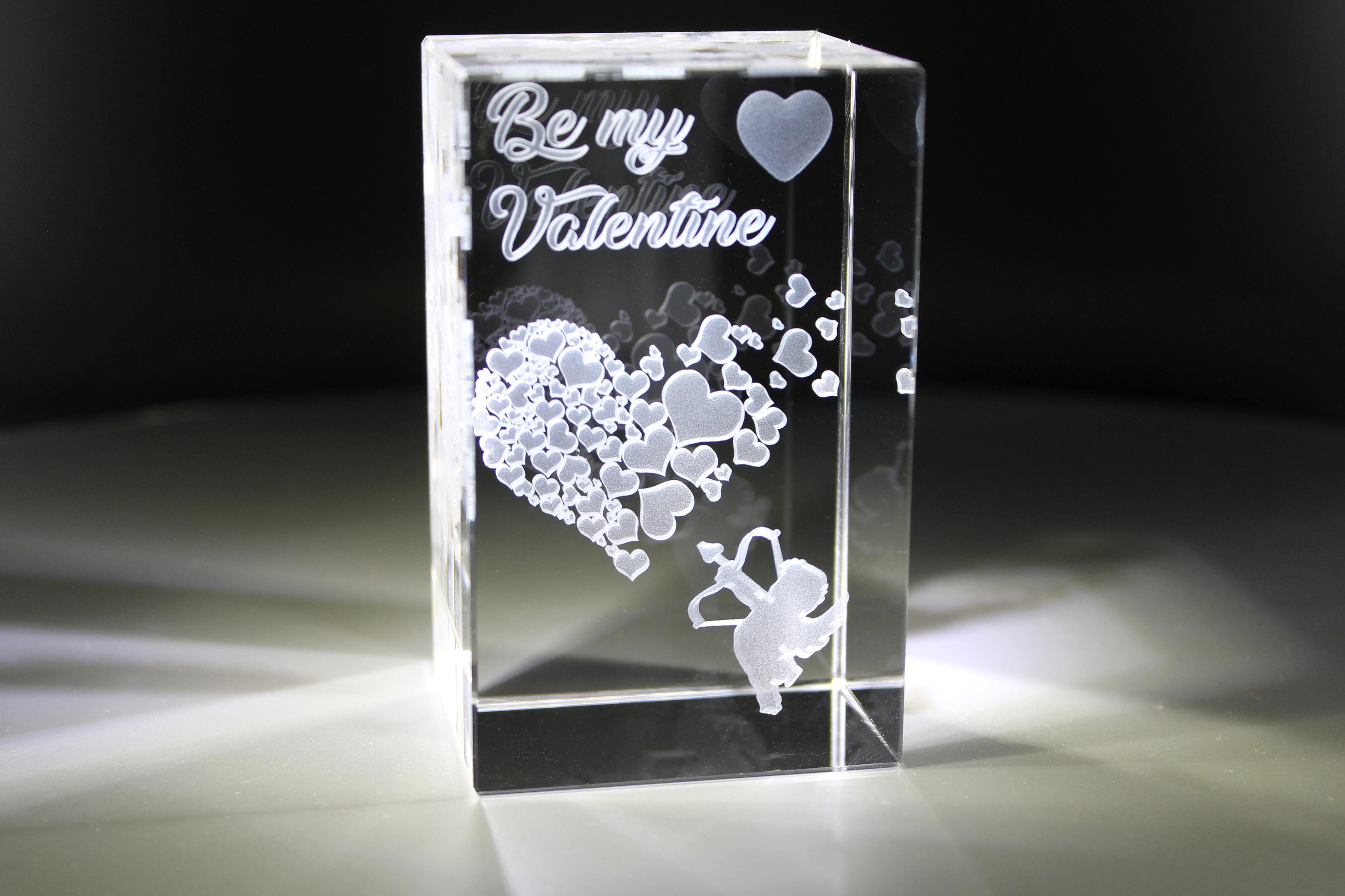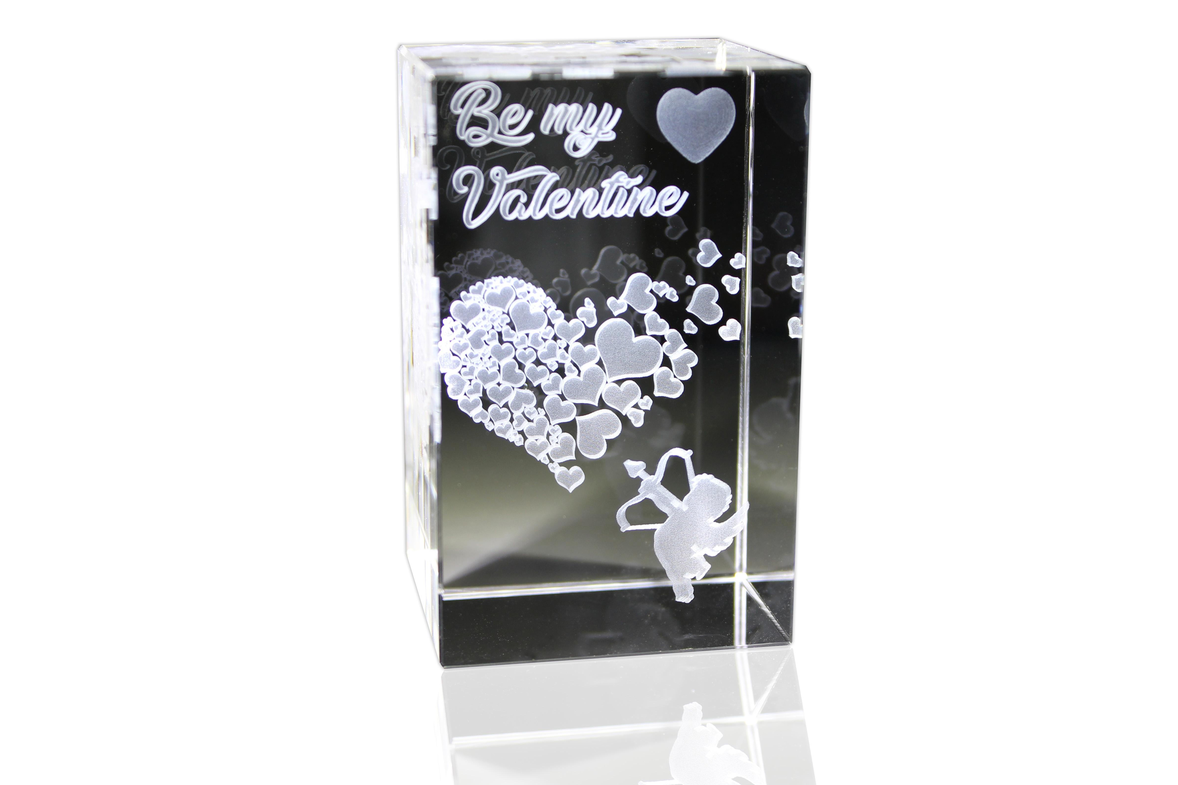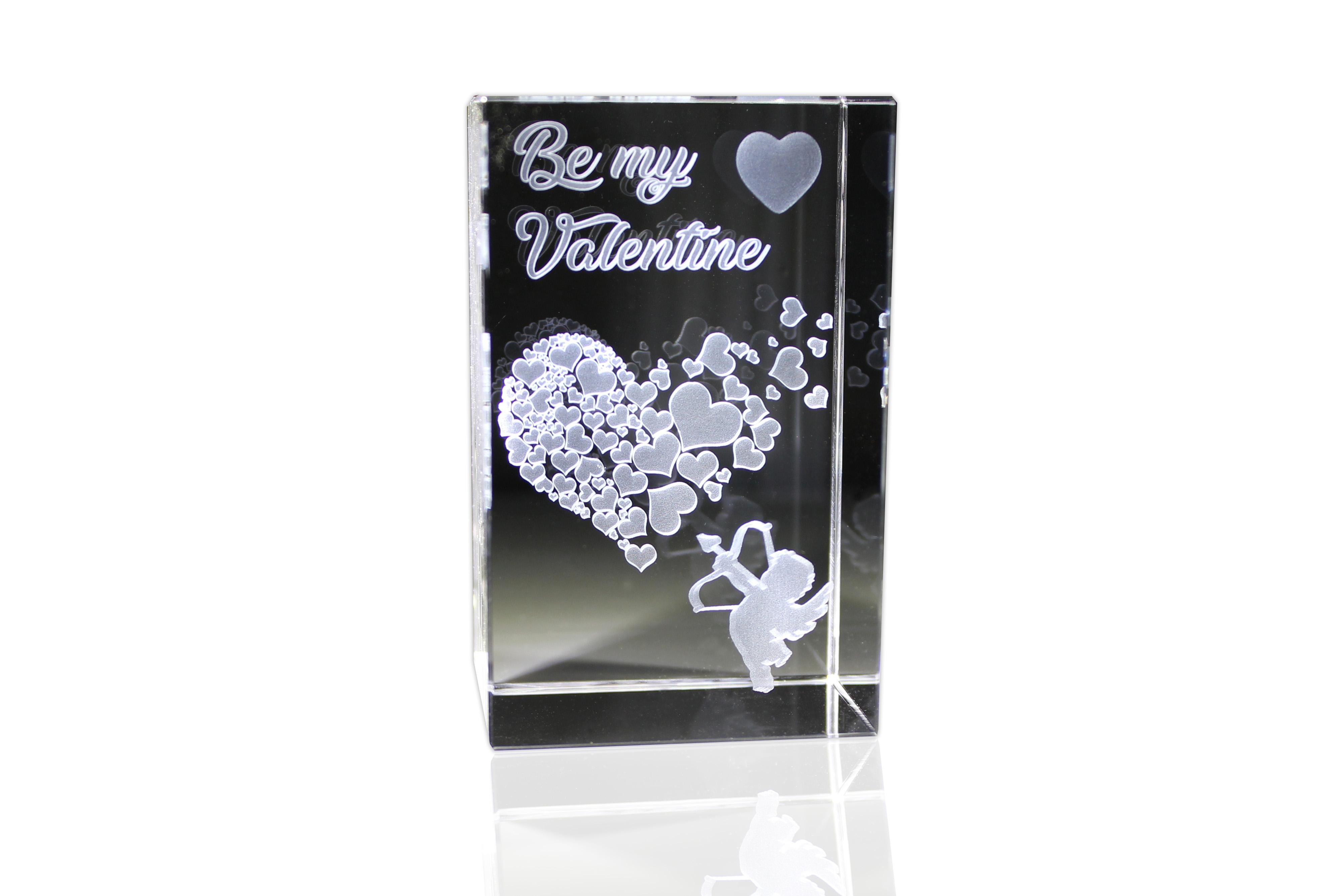 Produktinformationen "3D Glasquader I Motiv: Be my Valentine das Ideale Geschenk zum Valentinstag!"