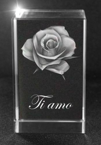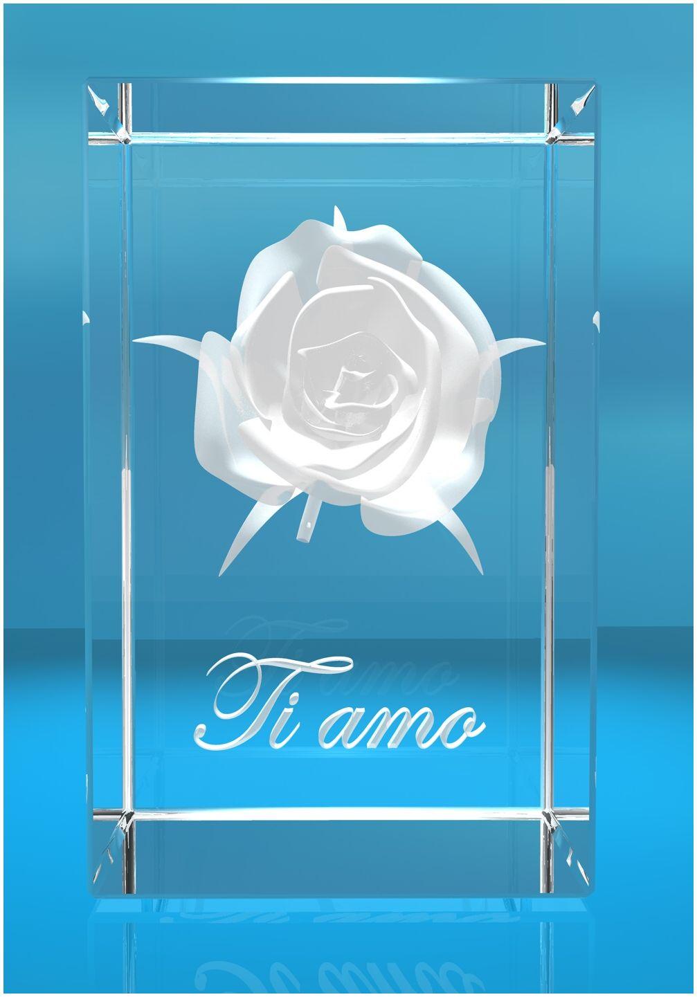 Eigenschaften "3D Glasquader I Rose I Text: Ti amo"