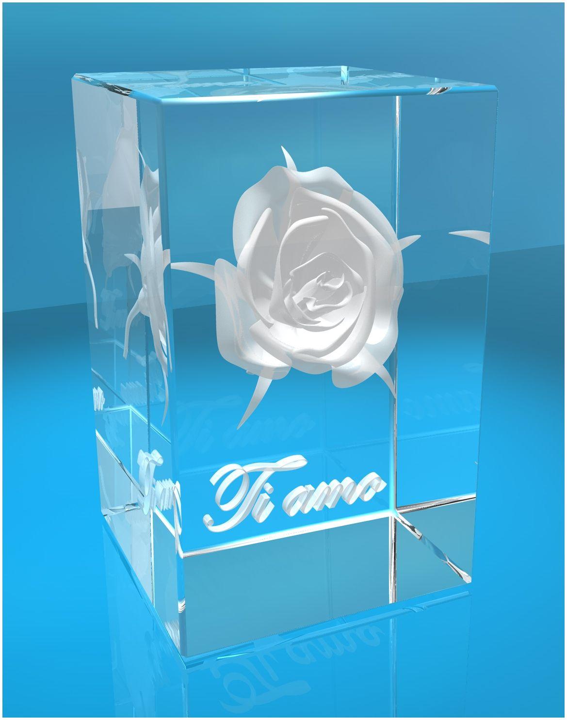 Produktinformationen "3D Glasquader I Rose I Text: Ti amo"