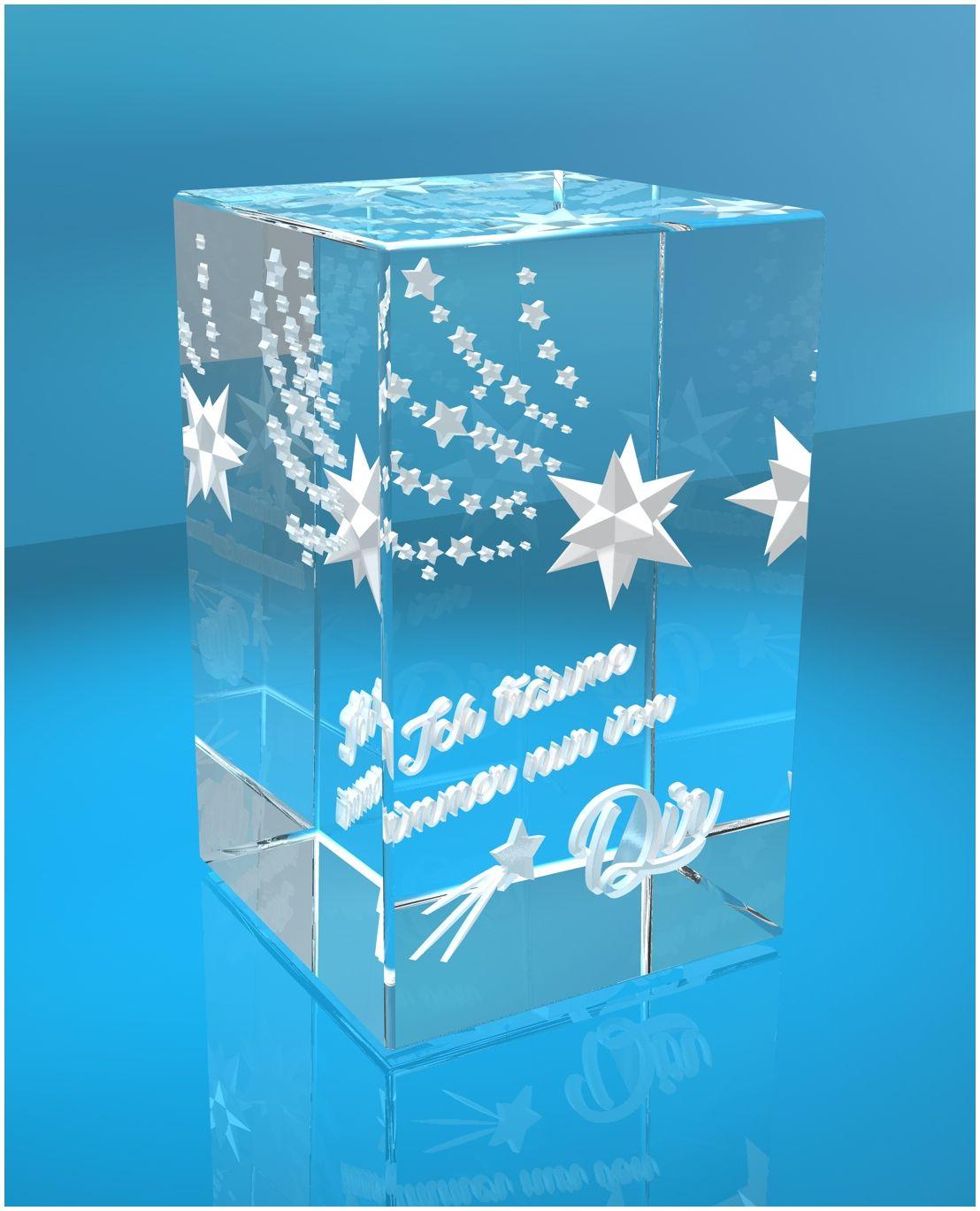 Eigenschaften "3D Glasquader I Sternschnuppe I Text: Ich träume immer nur von dir"