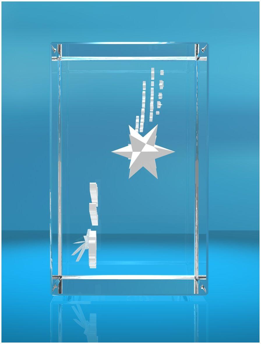 - 3D Glaskristall mit dem abgebildeten Motiv in den Abmessungen 80x50x50mm (Höhe x Breite x Tiefe)