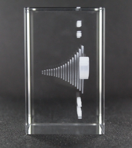 - 3D Glaskristall mit dem abgebildeten Motiv in den Abmessungen 80x50x50mm (Höhe x Breite x Tiefe)