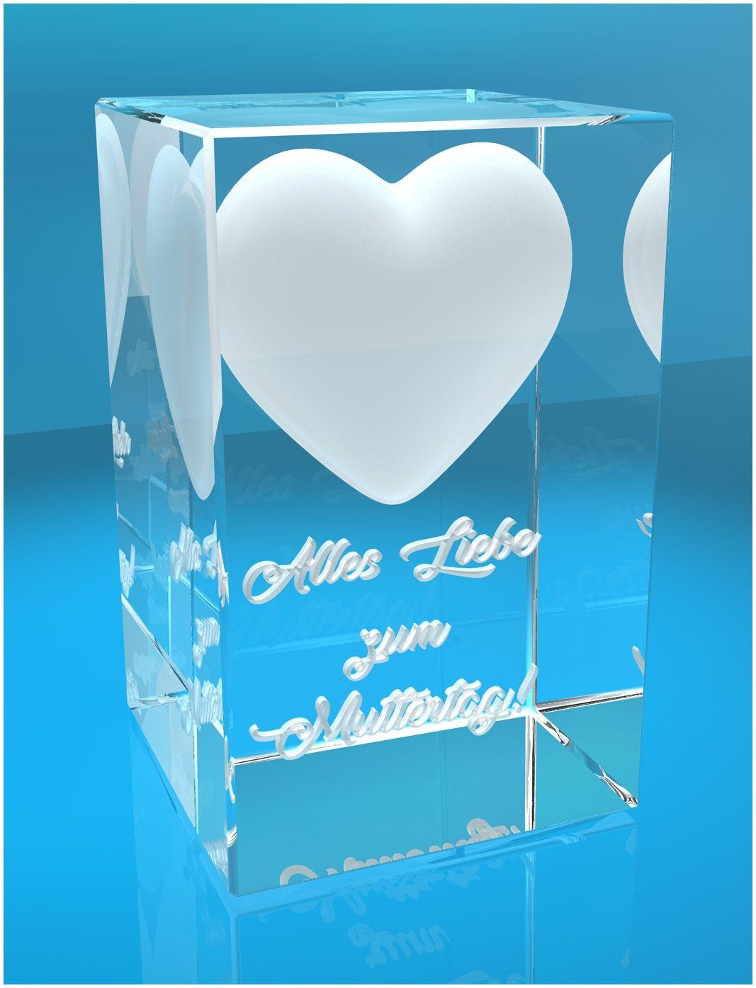 Produktinformationen "3D Glasquader I Verziertes Herz I Alles Liebe zum Muttertag!"