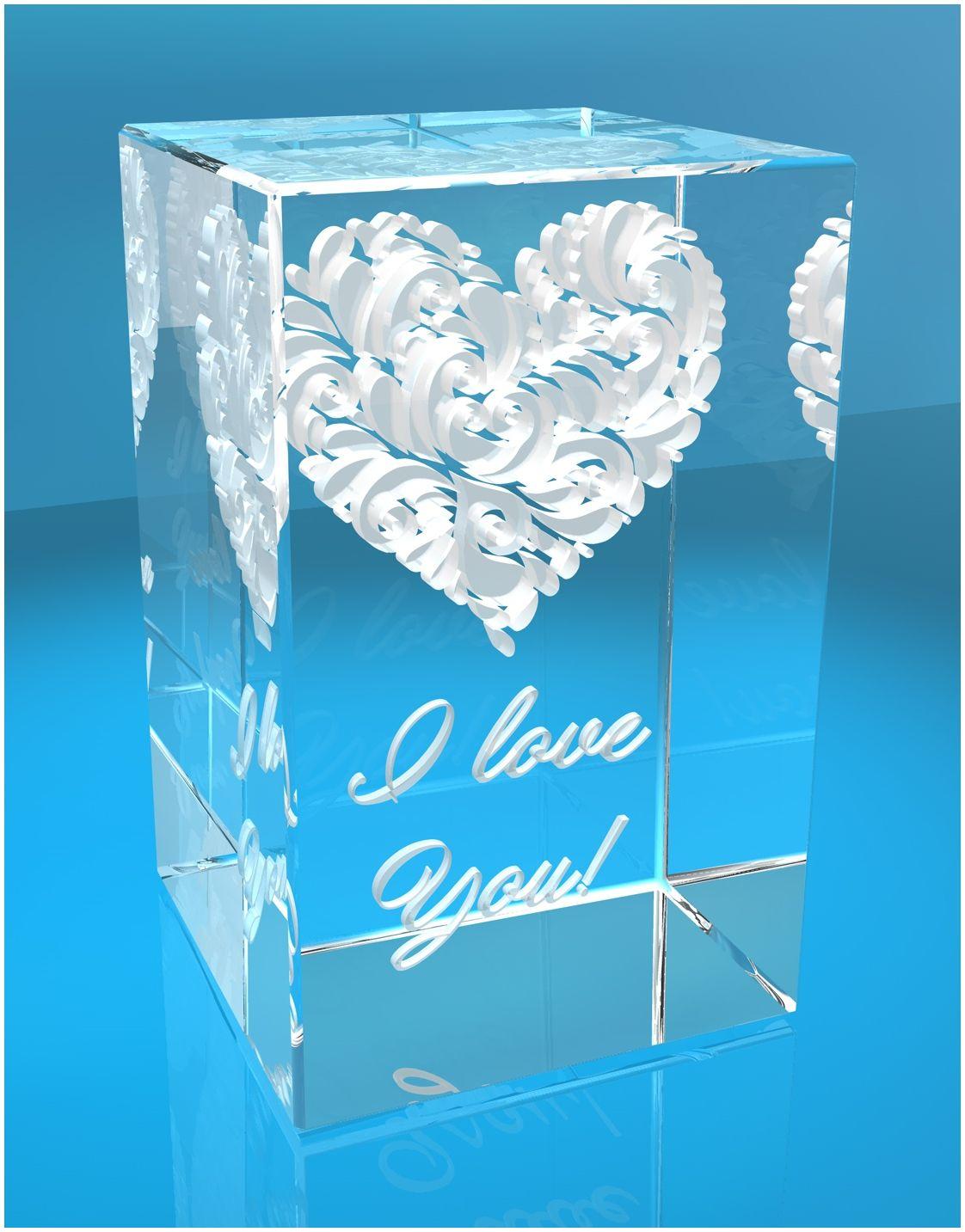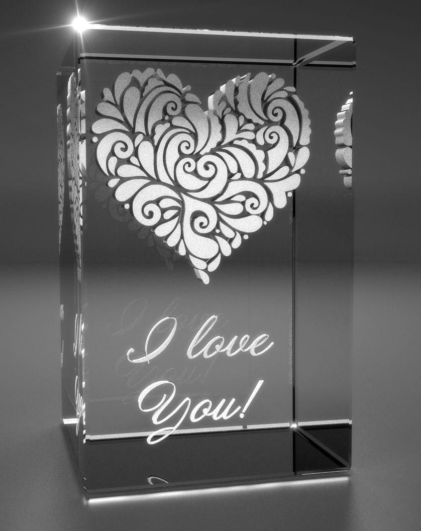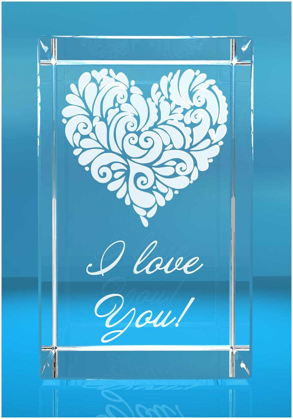 Produktinformationen "3D Glasquader I verziertes Herz I love You!"