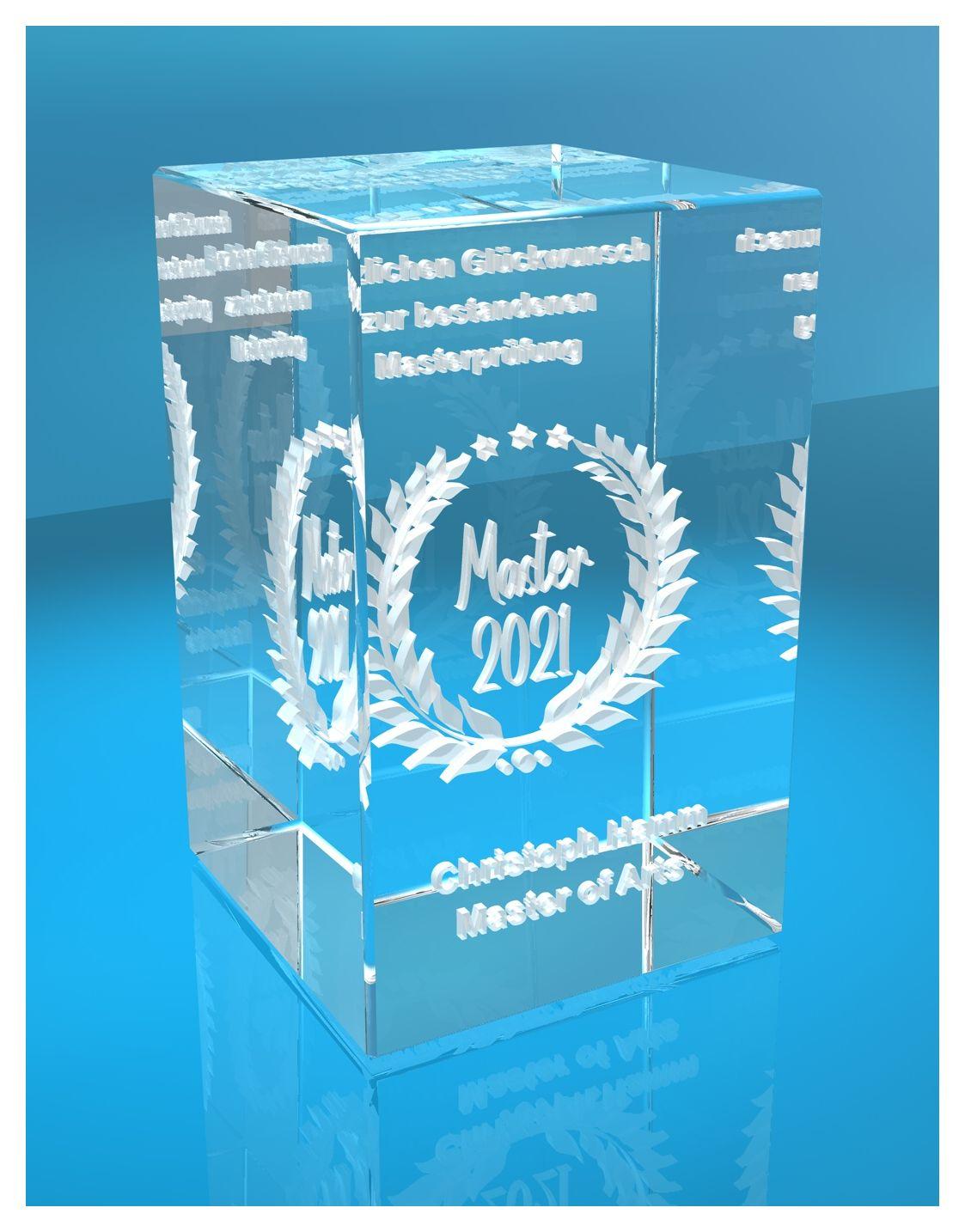 Produktinformationen "3D Glasquader Master + Jahreszahl Glückwunsch mit Wunschtext Geschenk zur Masterprüfung"