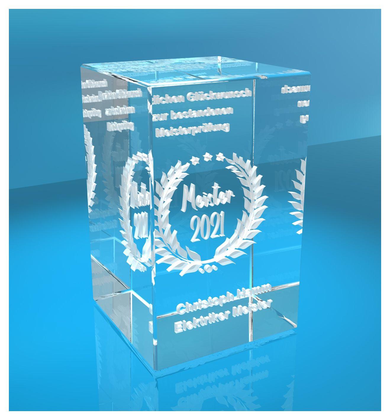 Produktinformationen "3D Glasquader Meister Glückwunsch mit Wunschtext Geschenk zur Meisterprüfung"