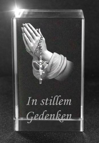 Eigenschaften "3D Glasquader Motiv: Betende Hände Text: In stillem Gedenken"