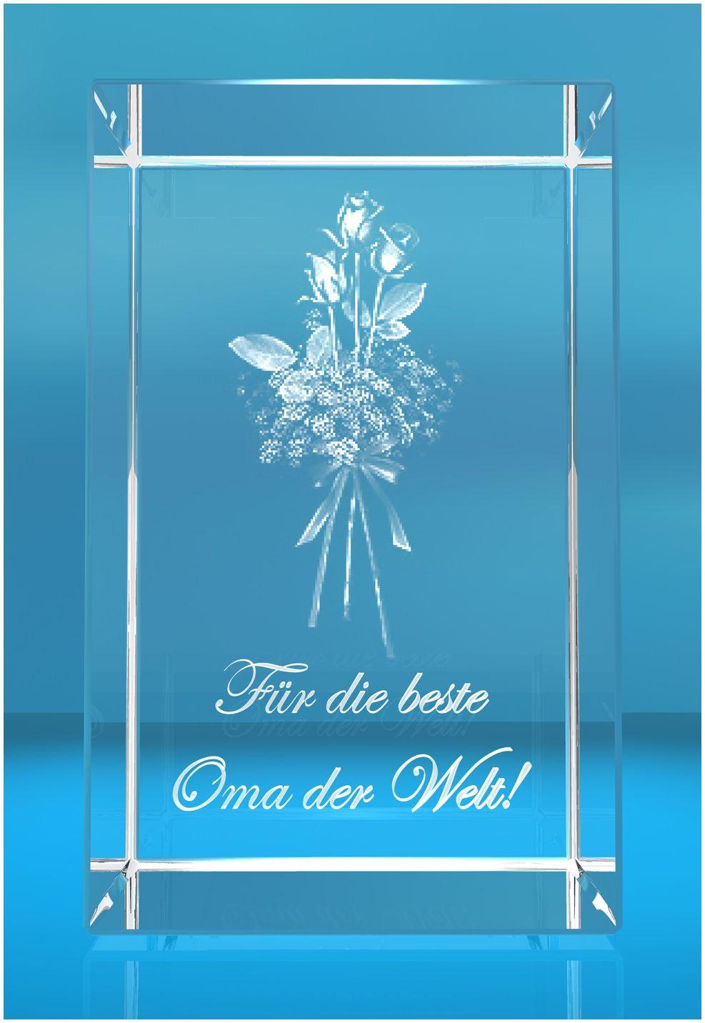 Produktinformationen "3D Glasquader Motiv: Rosenstrauss Beste Oma der Welt"