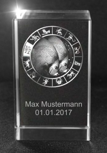 Eigenschaften "3D Glasquader Motiv: Sternzeichen Fische + Wunschtext"