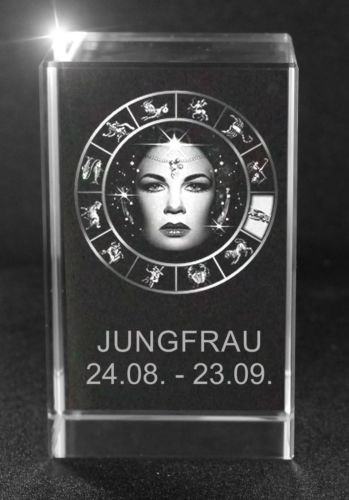 Eigenschaften "3D Glasquader Motiv: Sternzeichen Jungfrau"