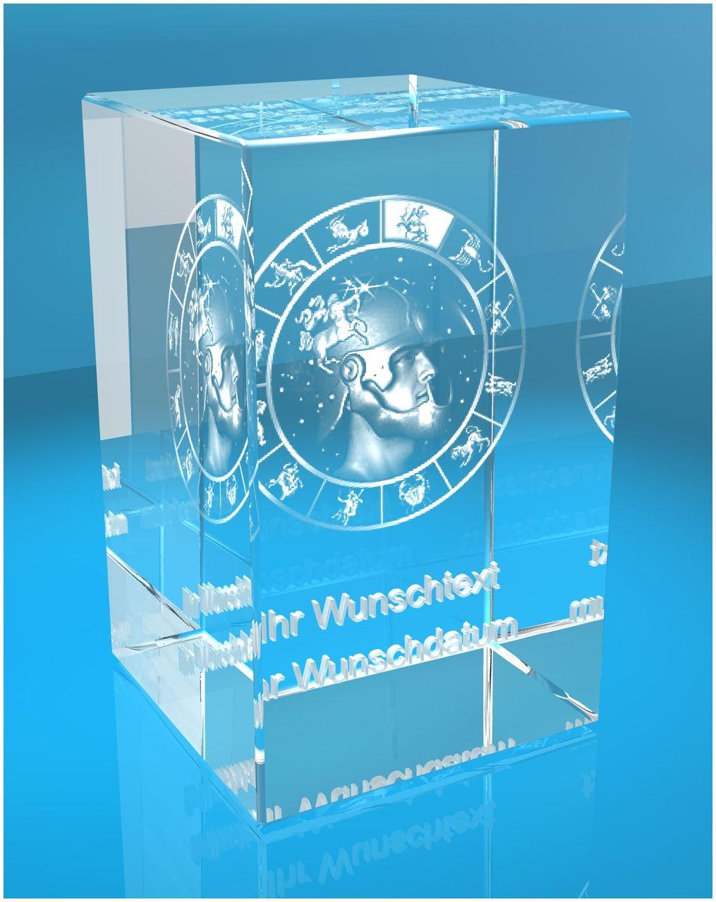 Eigenschaften "3D Glasquader Motiv: Sternzeichen Schütze + Wunschtext"