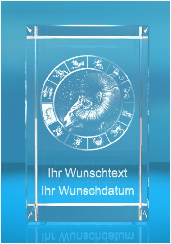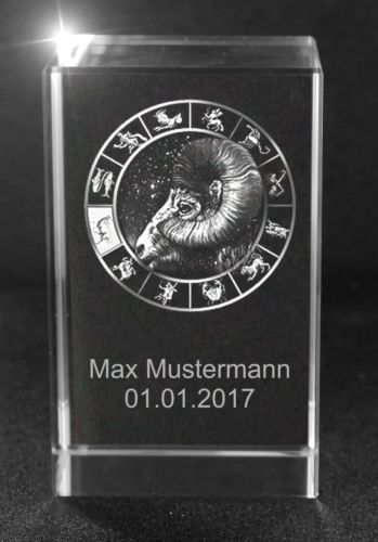 Produktinformationen "3D Glasquader Motiv: Sternzeichen Widder + Wunschtext"
