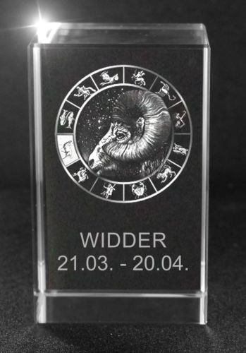 Eigenschaften "3D Glasquader Motiv: Sternzeichen Widder"