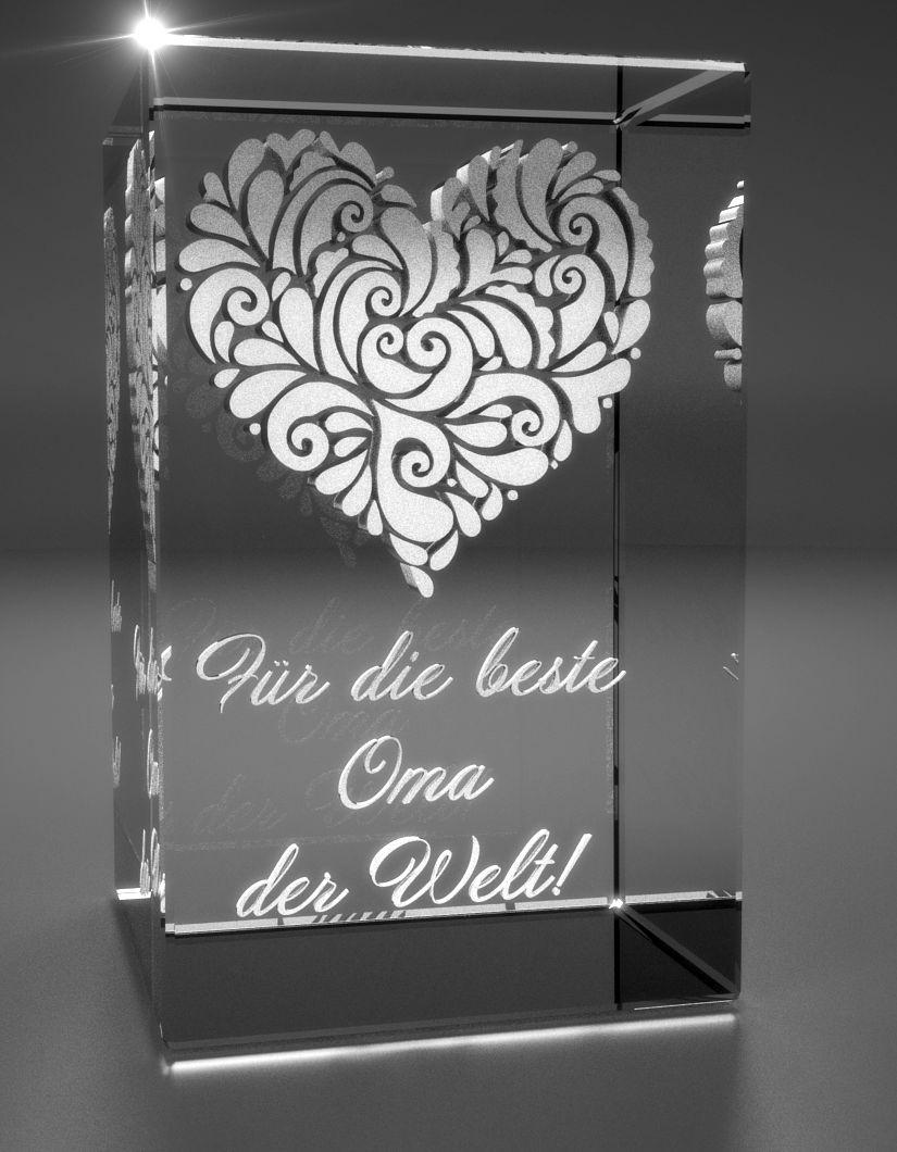 3D Glasquader Motiv: Verziertes Herz Beste Oma der Welt!