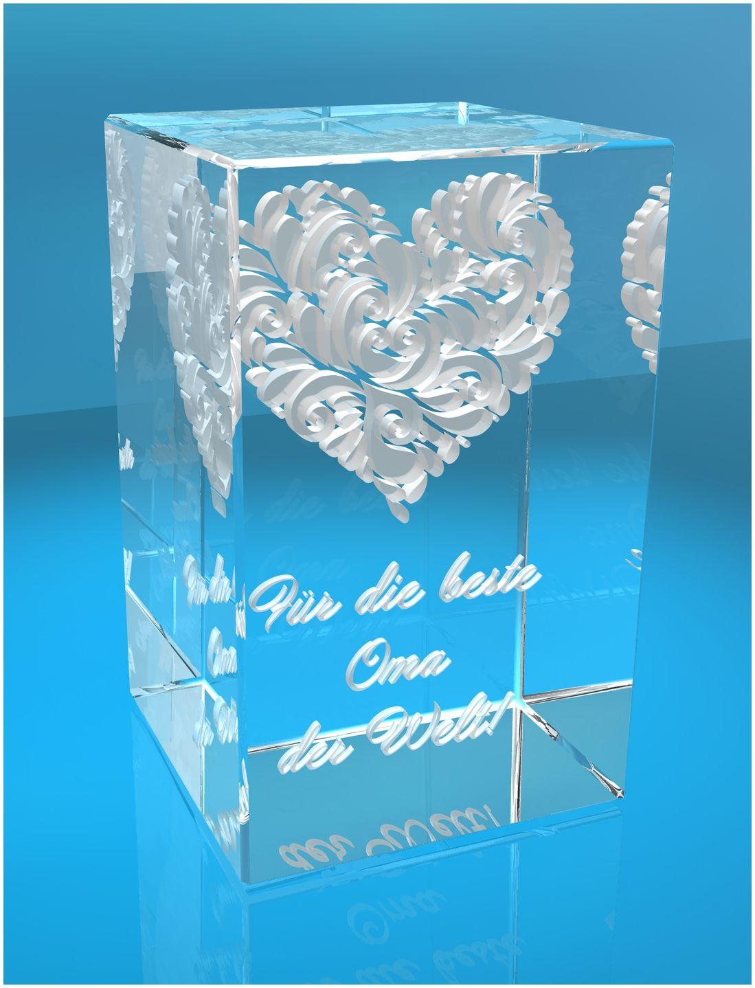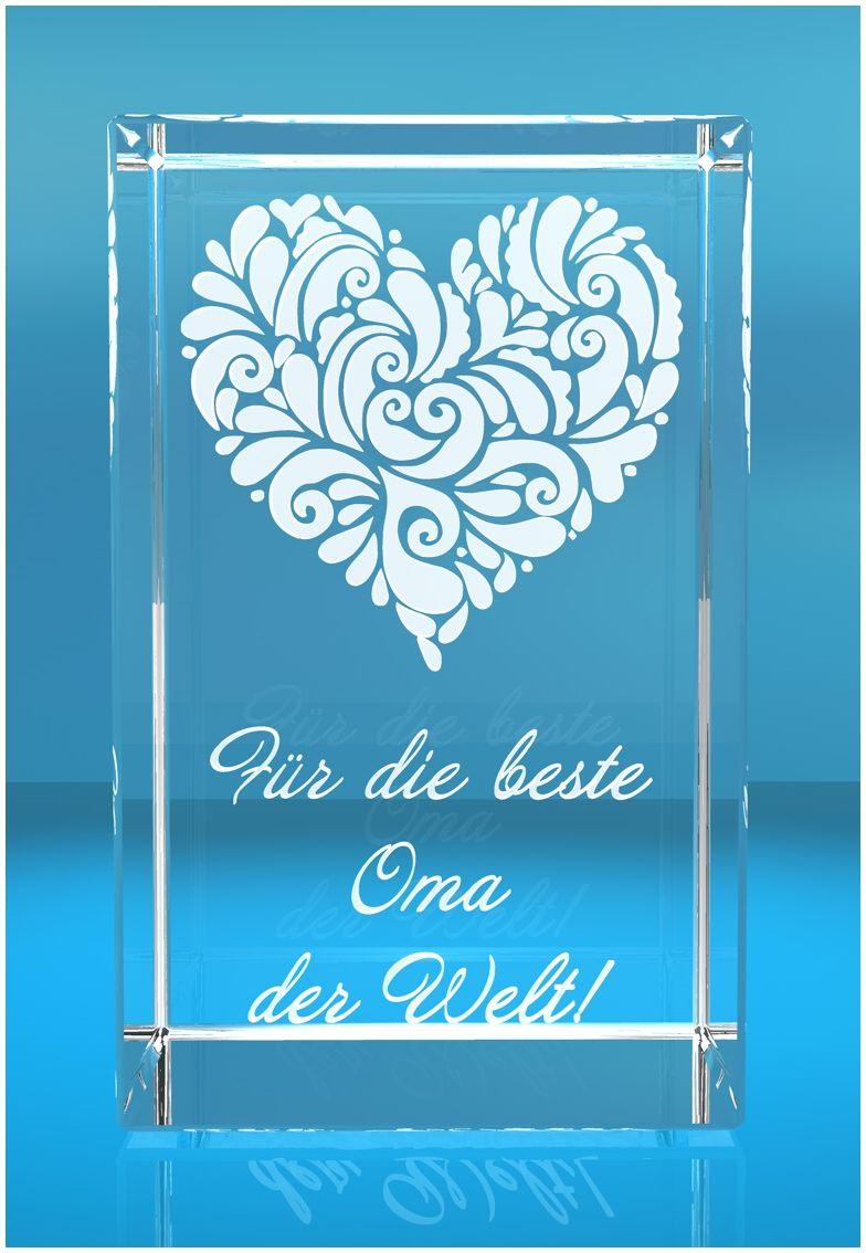 Produktinformationen "3D Glasquader Motiv: Verziertes Herz Beste Oma der Welt!"
