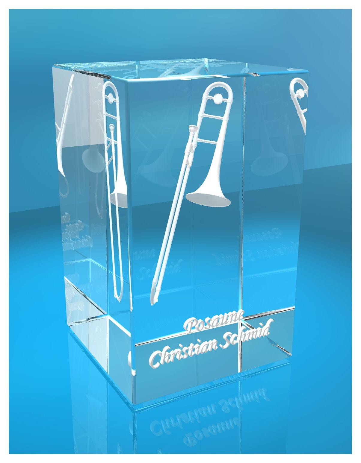 Produktinformationen "3D Glasquader |Posaune mit Wunschnamen |Blasinstrument |Geschenk für Posaunespieler Musiker Orchester"