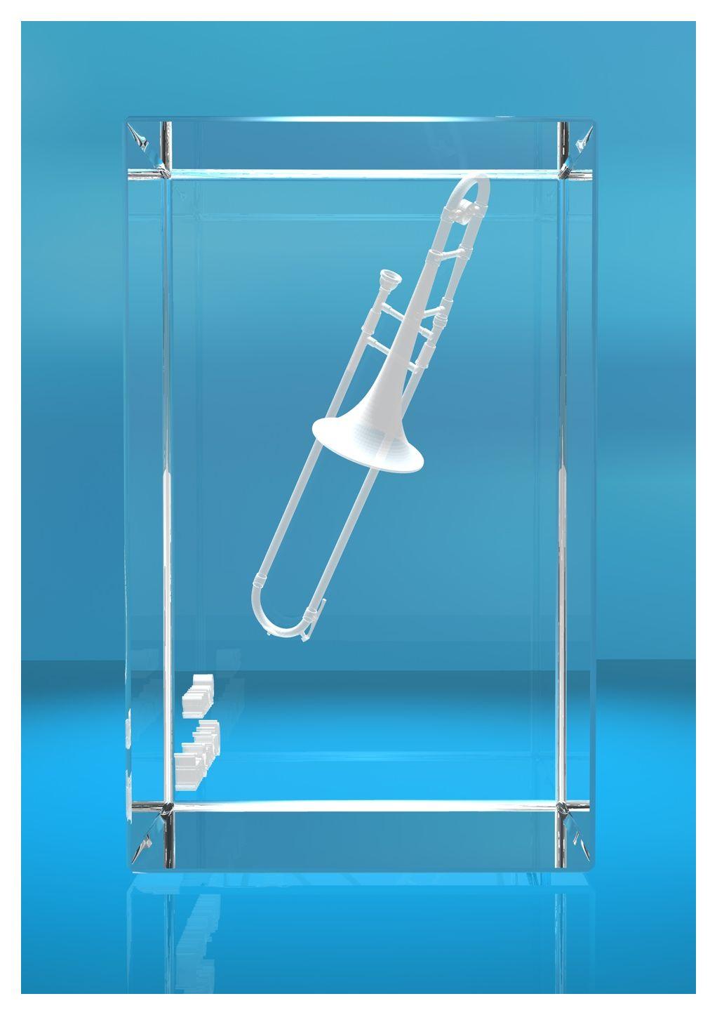 Eigenschaften "3D Glasquader |Posaune mit Wunschnamen |Blasinstrument |Geschenk für Posaunespieler Musiker Orchester"