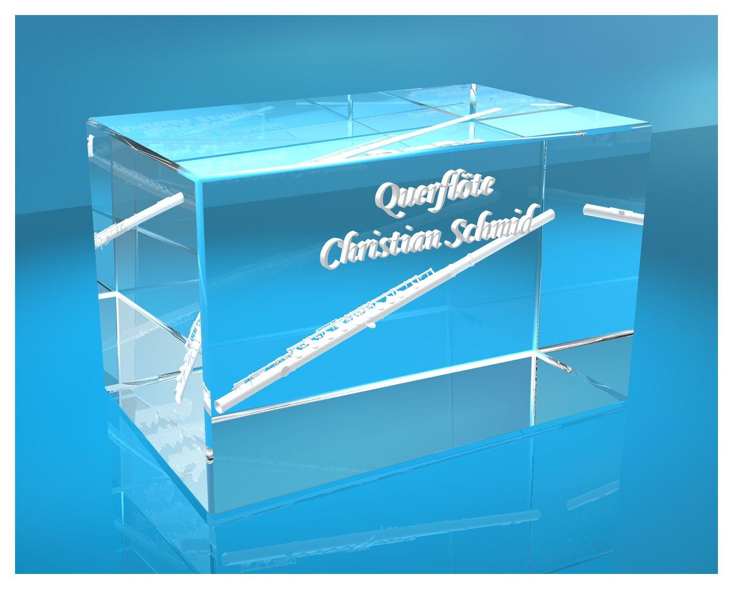 Produktinformationen "3D Glasquader |Querflöte mit Wunschnamen |Flöte |Geschenk für Flötisten Flöstistin Musiker Orchester|Konzertflöte"