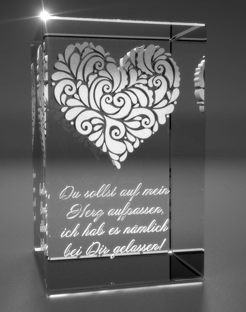 Eigenschaften "3D Glasquader verziertes Herz Du sollst auf mein Herz aufpassen..."
