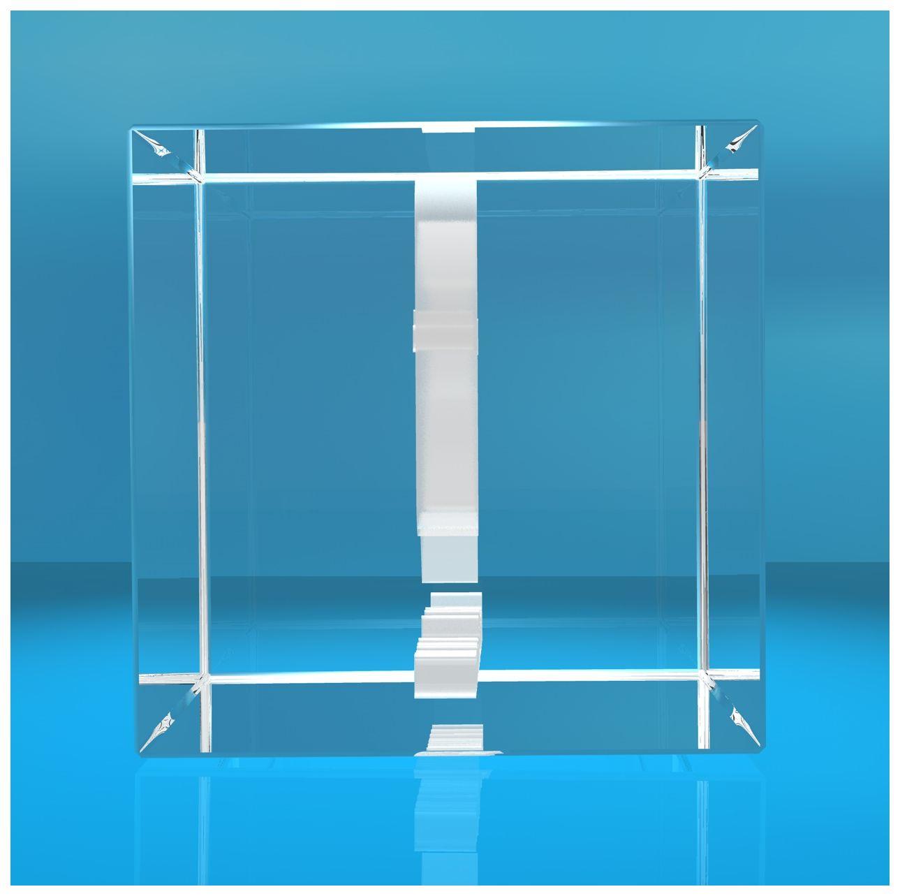 - 3D Glaskristall mit dem abgebildeten Motiv in den Abmessungen 60x60x60mm (Höhe x Breite x Tiefe)