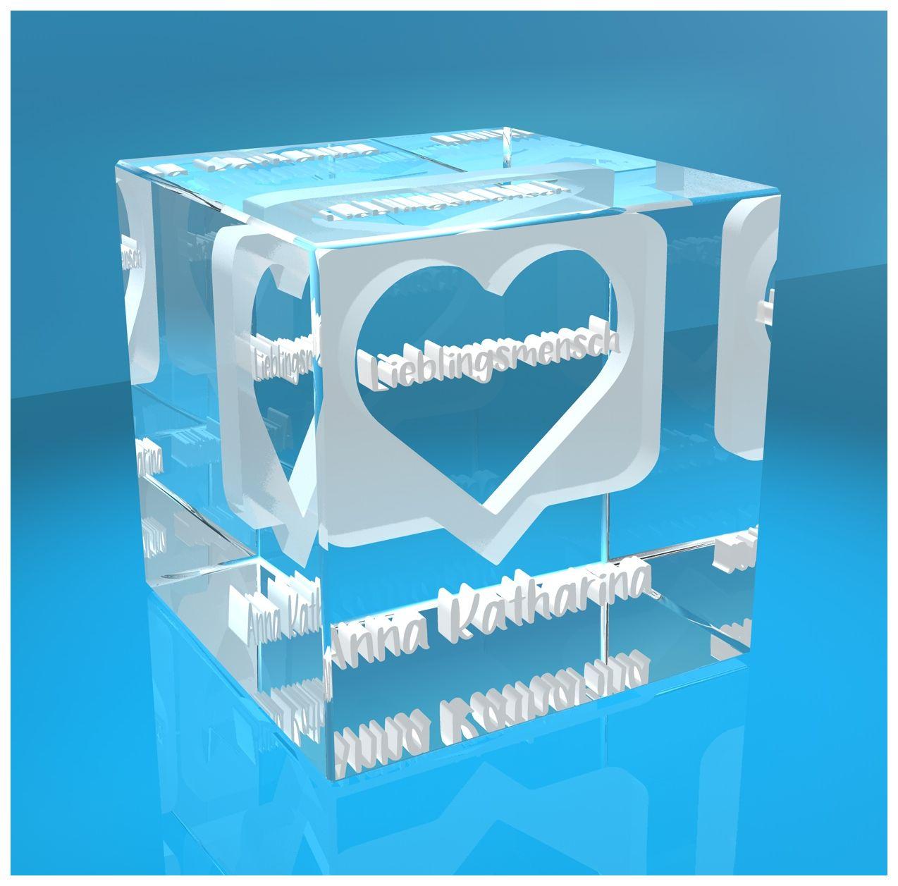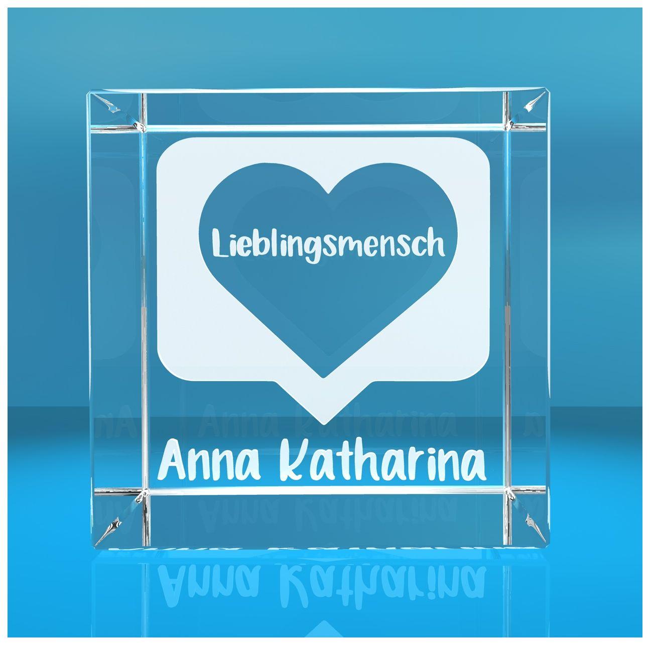 3D Glaswürfel Herz Icon + Lieblingsmensch + Wunschname