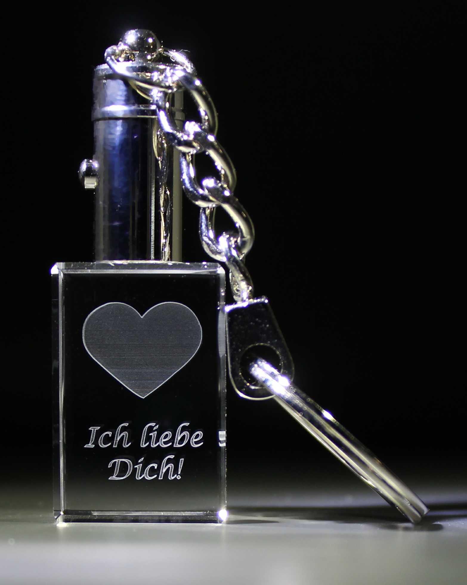 Unsere Schlüsselanhänger enthalten eine LED-Beleuchtung welche das von uns in den Glaskristall gravierte Motiv beleuchtet. Somit ist dieser auch als kleine Schlüsselloch-Lampe in der Nacht zu benutzen.