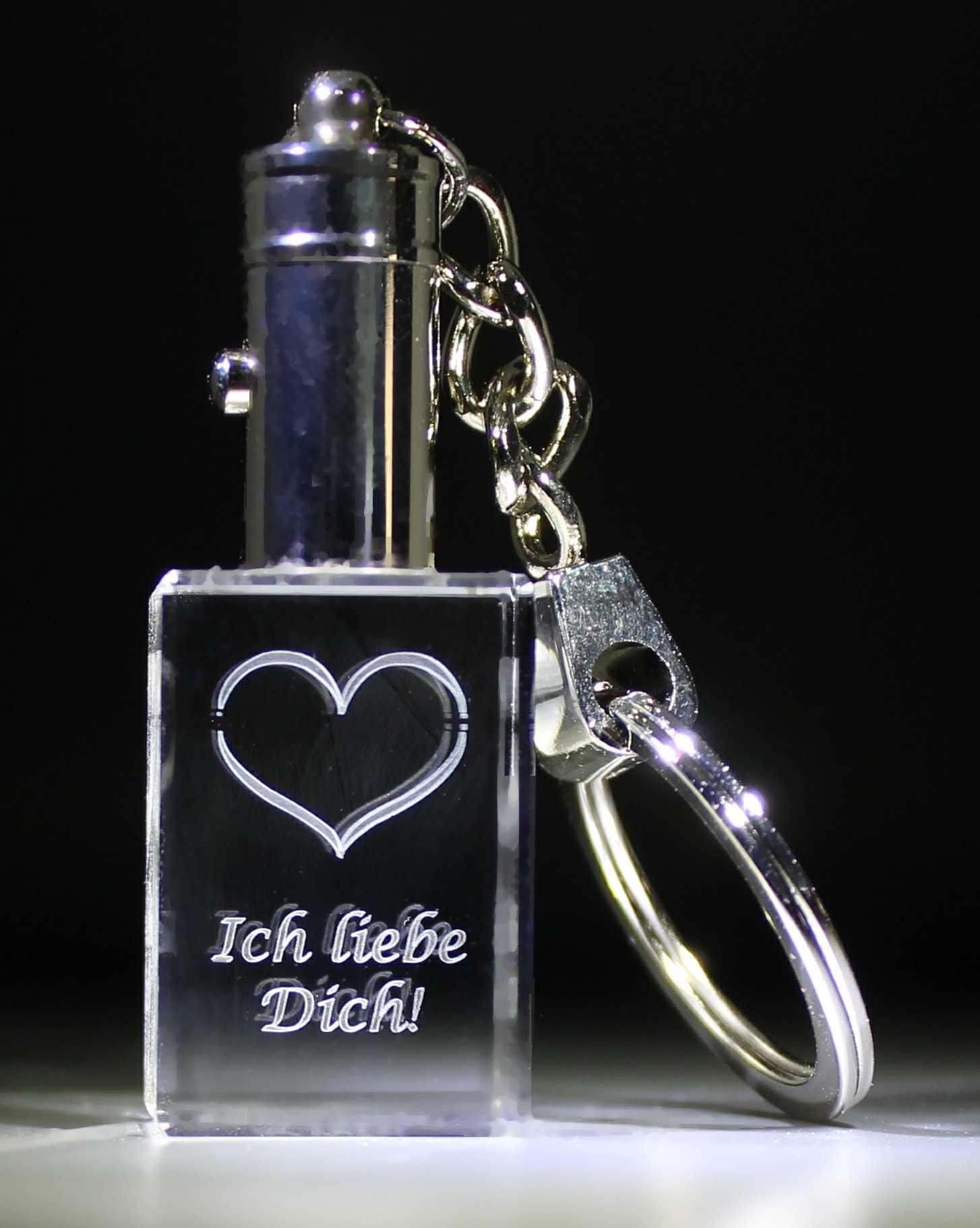 Unsere Schlüsselanhänger enthalten eine LED-Beleuchtung welche das von uns in den Glaskristall gravierte Motiv beleuchtet. Somit ist dieser auch als kleine Schlüsselloch-Lampe in der Nacht zu benutzen.