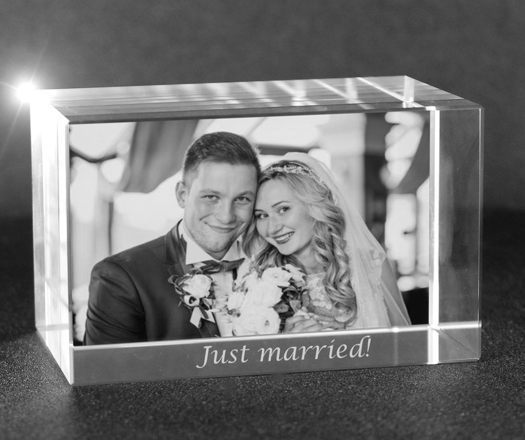 Glasquader 80x50x50mm incl. 3D Umwandlung von bis zu 2 Personen und LED-Leuchtsockel