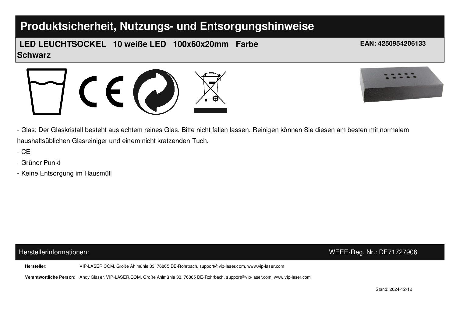 LED LEUCHTSOCKEL 10 weiße LED 100x60x20mm Farbe Schwarz