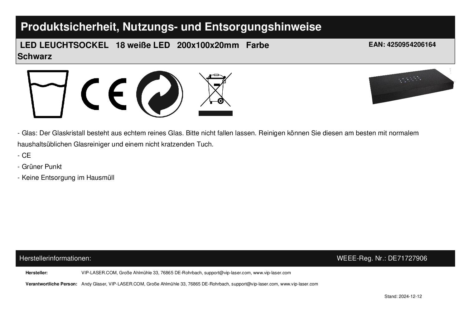 Produktinformationen "LED LEUCHTSOCKEL 18 weiße LED 200x100x20mm Farbe Schwarz"