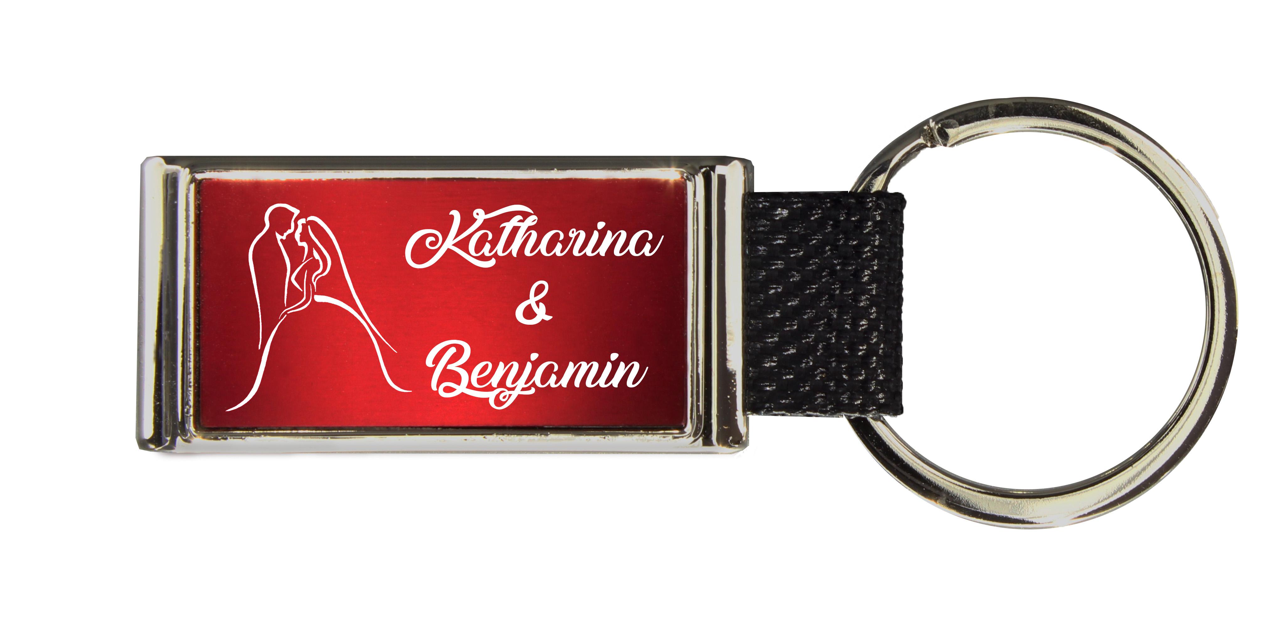 Metall-Schlüsselanhänger Glory - mit einem rot eingelassenen Plättchen und Deinen Wunschnamen graviert