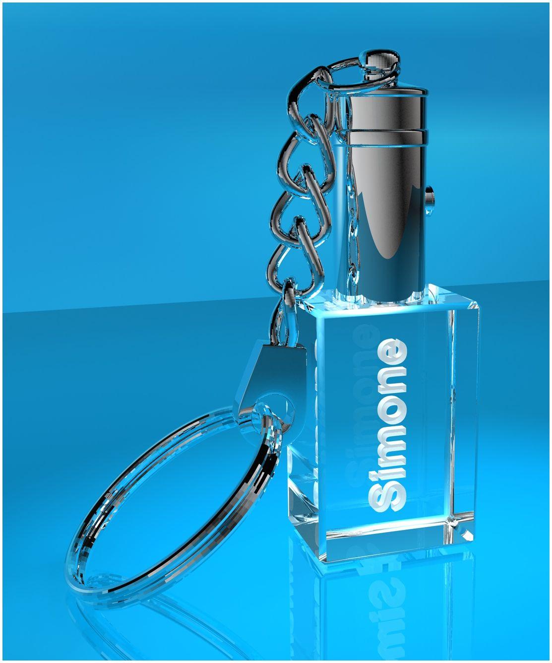 - 3D Glaskristall Schlüsselanhänger mit den Abmessungen 30x20x15mm (Höhe x Breite x Tiefe)
