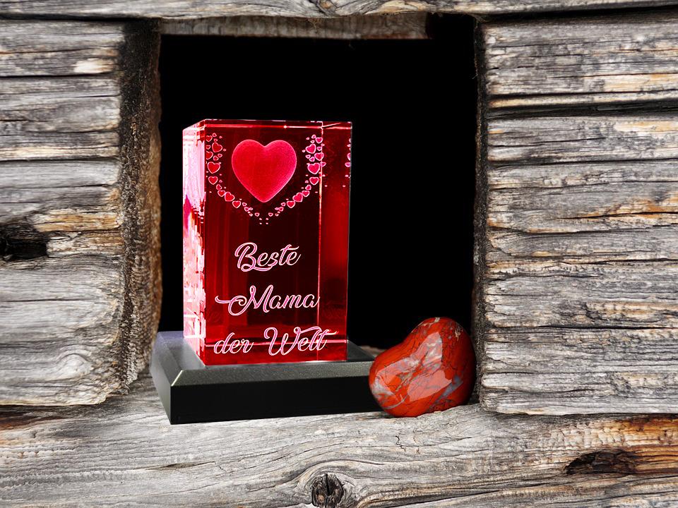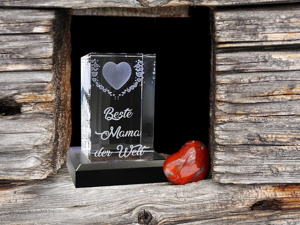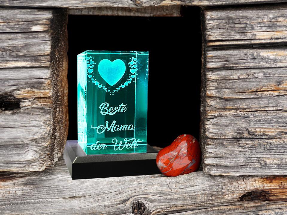 VIP-LASER 3D Kristall Motiv: Fliegende Herzen Beste Mama der Welt